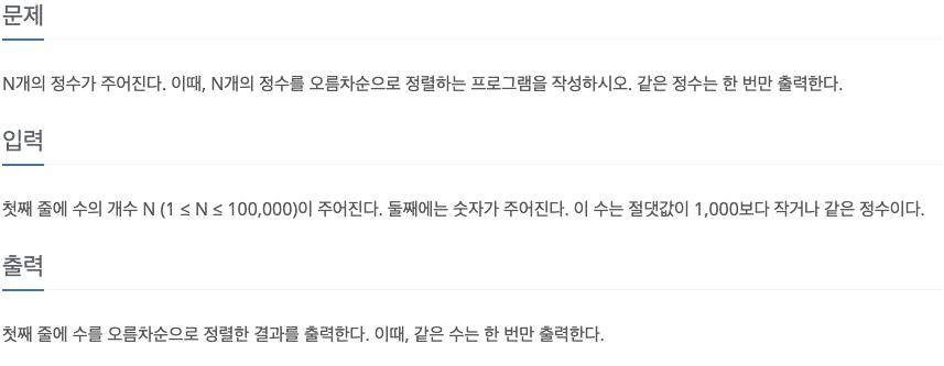 굉장히 간단한 문제이다. 중복값 제거는 set()함수를 통해 쉽게 없앨 수 있고 이를 다시 리스트로 만든후에 sort()를 하면 된다. sort()함수의 경우 set 타입변수에서는 사용이 불가하기 때문에 리스트로 다시 지정한다. 따라서 코드는 다음과 같이 작성된다.