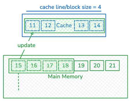 캐시 동작은 HW에서 관리한다면서 굳이 이렇게 배우는 이유가 뭐냐? → cache miss 발생시 cache가 메인 메모리에서 참조하는 방식에 따라 성능의 차이가 크기 때문!!
